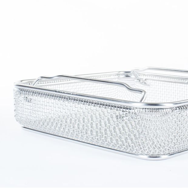Solid and functional steel wire items, designed to optimize handling and treatments such as washing and sterilization.