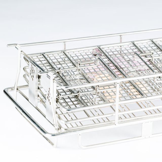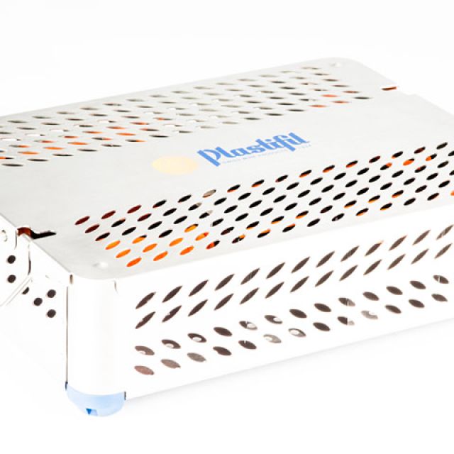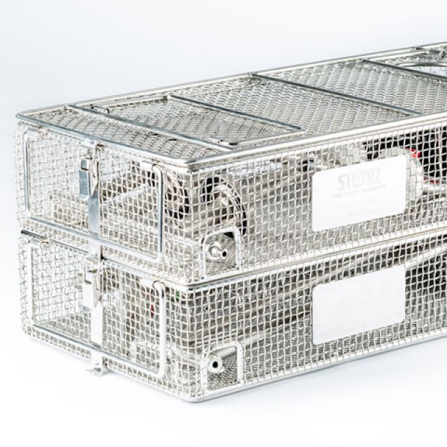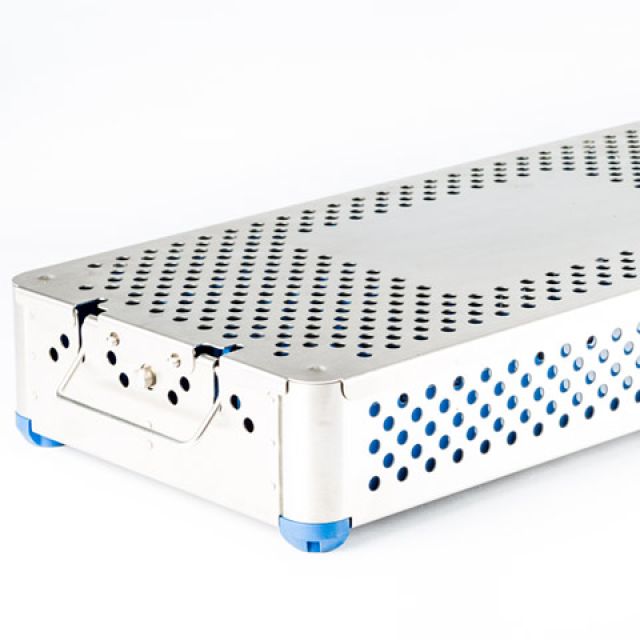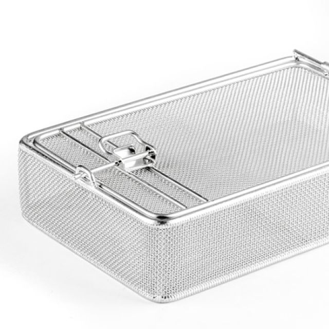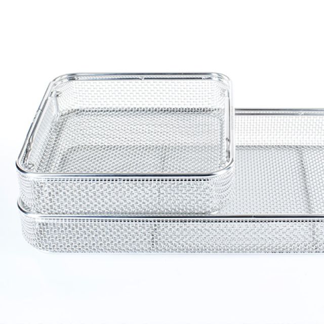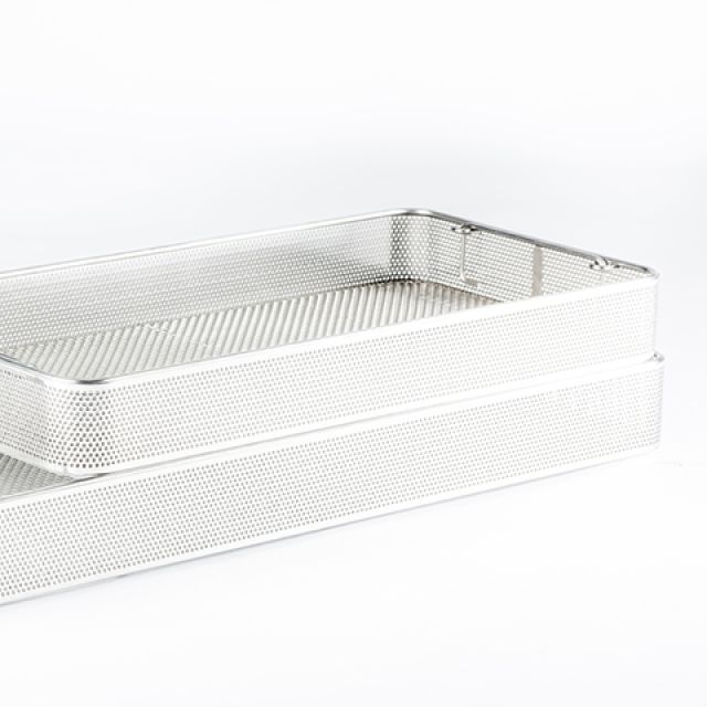 Sterilization baskets made of wire meshes or with sheet metal edges perforated in accordance with DIN. Available in all sizes, they can be supplemented with standard or custom lids and positioning systems, both in silicone and in PPSU.